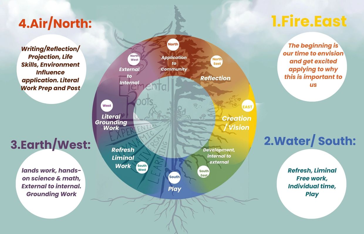 Air/ North: Discussion, Writing/Reflection/Projection, Life Skills, Literal Work Prep and Post (Reading), Internal to External Processing